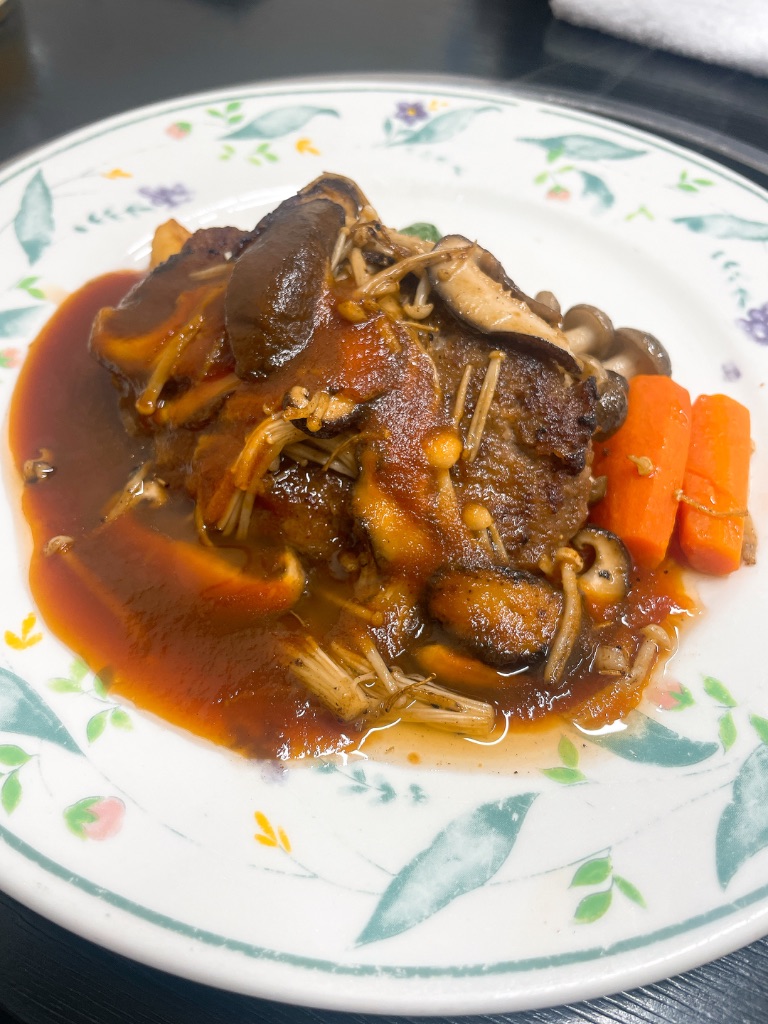 じっくり煮込まれた牛肉と、たっぷりのキノコ。
